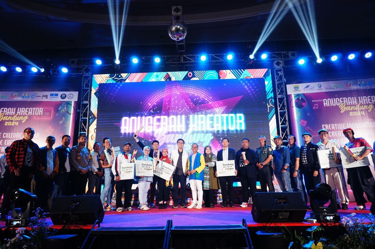 Sebanyak 13 insan kreatif berhasil meraih penghargaan dari Pemerintah Kota (Pemkot) Bandung pada acara Anugerah Kreator Bandung 2024 yang digelar di Harris Hotel & Convention Center, Senin malam (25/11/2024).(FOTO: Humas Pemkot Bandung)