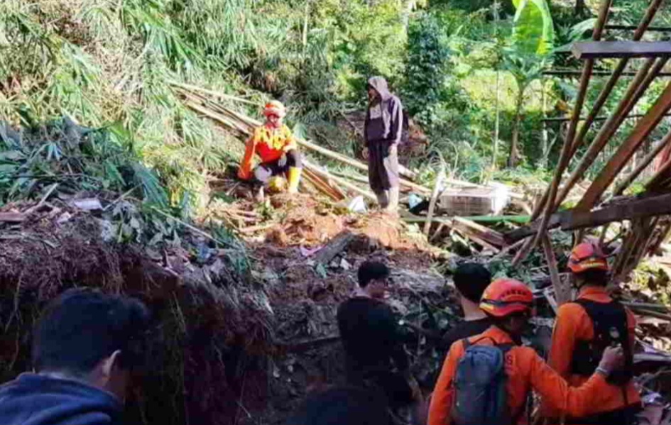 Dalam peristiwa tersebut, empat warga terjebak di dalam rumah, satu orang dilaporkan tertimbun material longsor. Hngga Kamis (09/04/2026), korban belum berhasil dievakuasi.