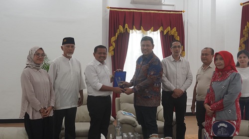 Bupati Sumedang Dony Ahmad Munir (ketiga kiri) menerima kunjungan silaturahmi Direktur Utama Istiqlal Global Fund, Ashanul Haq, beserta jajaran di Ruang Tamu Bupati Sumedang, Senin (22/12/2025). Kunjungan tersebut membahas peluang investasi serta rencana pengembangan Kawasan Ekonomi Khusus (KEK) Halal di Kabupaten Sumedang.(Foto: Humas Pemkab Sumedang)
