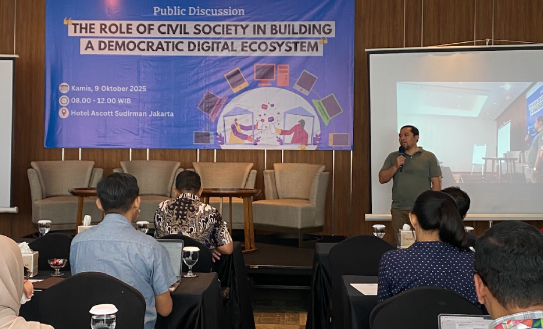 Dinamisator Koalisi Damai, Bayu Wardhana menegaskan pentingnya memastikan suara masyarakat sipil didengar dalam kebijakan digital.