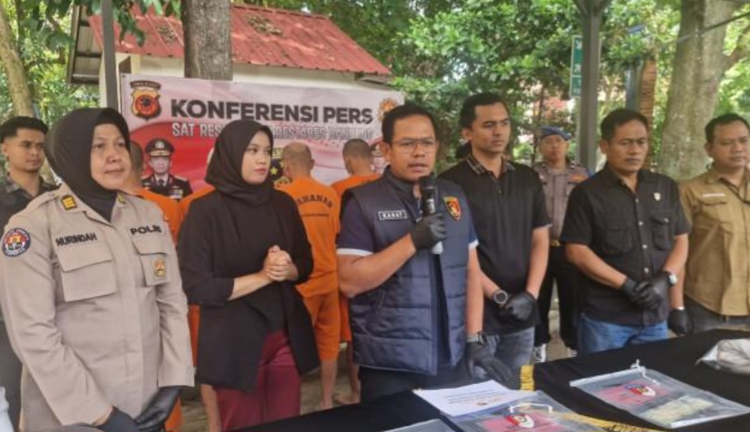 Kasatreskrim Polrestabes Bandung, AKBP Abdul Rahman memberikan keterangan pers pengungkapan kasus curanmor.(Foto:Istimewa).