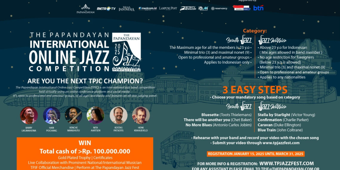 SATUJABAR, BANDUNG – Setelah sukses menggelar empat edisi kompetisi jazz online sejak 2021, The Papandayan International Jazz Online Competition (TPJC) 2025 kembali hadir dan siap memberikan kesempatan kepada musisi jazz dari seluruh dunia untuk menunjukkan bakat mereka. Event yang diselenggarakan oleh The Papandayan Jazz Management ini mengusung konsep hybrid, menggabungkan platform virtual dan media sosial, sehingga dapat diakses oleh para peserta dan penonton dari berbagai belahan dunia.
