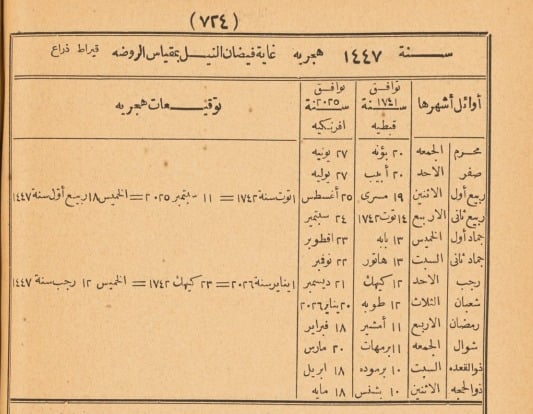 Yang sangat mengesankan adalah tabel untuk tahun 1447 Hijriah yang terdapat pada halaman 764 dalam naskah tersebut. Muhammad Mukhtar Pasha secara eksplisit mencantumkan konversi waktu yang sangat mendetail.