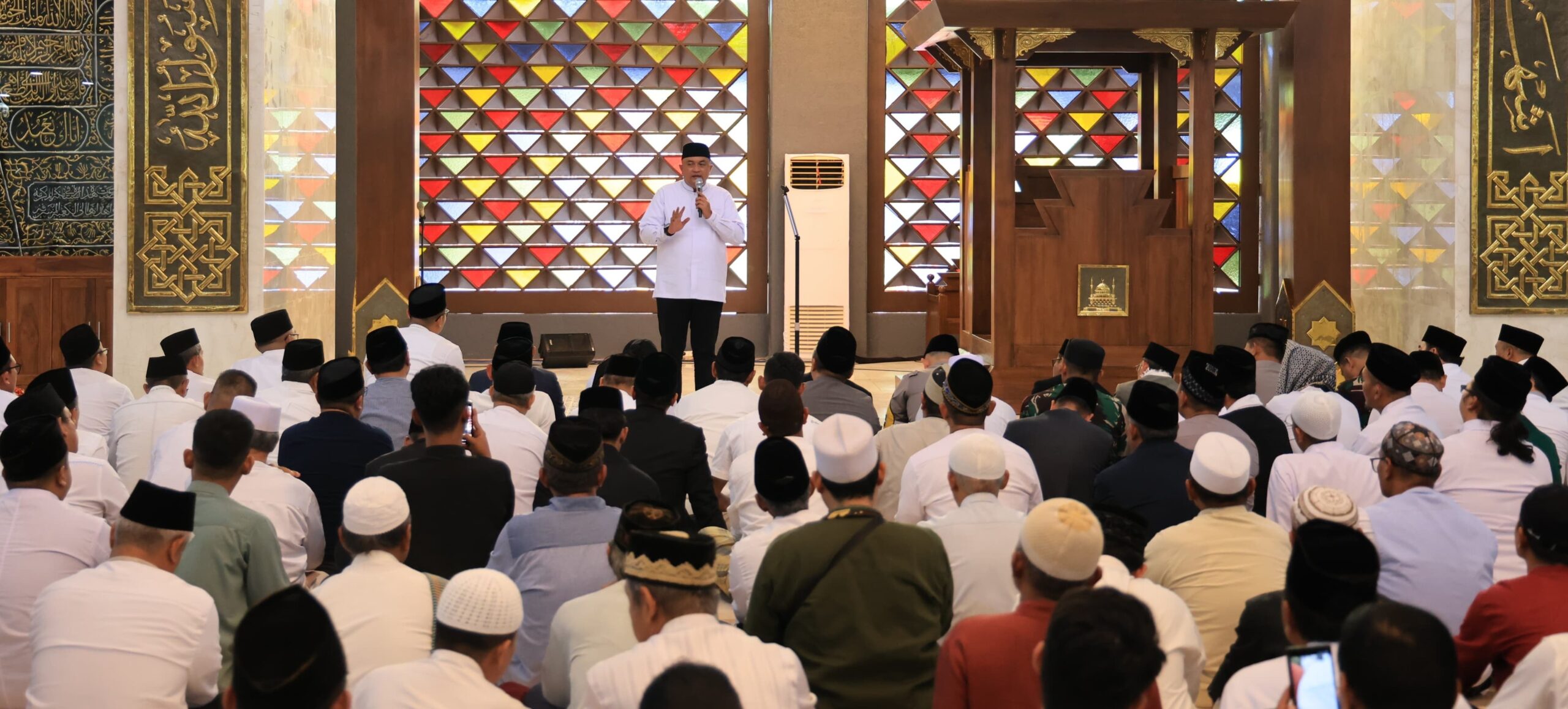 Bupati Bogor Rudy Susmanto, pada kegiatan refleksi akhir tahun di Masjid Nurul Wathon, Jumat (26/12/25).(Foto: Humas Pemkab Bogor)