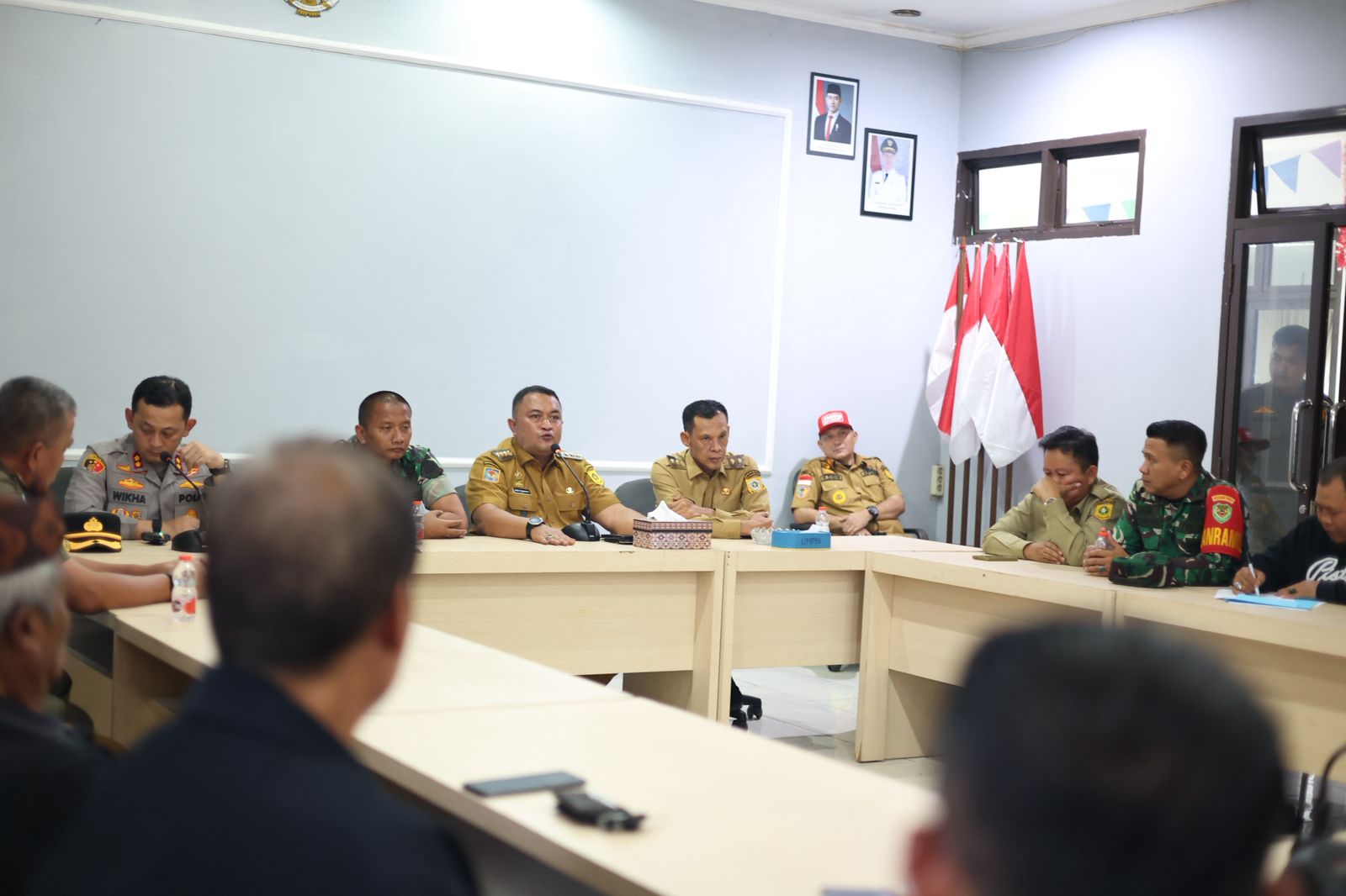 Bupati Bogor, Rudy Susmanto, menemui warga dari sejumlah kecamatan di wilayah Bogor Barat untuk mendengarkan secara langsung aspirasi masyarakat terkait aktivitas pertambangan. Pertemuan berlangsung di Kantor Kecamatan Cigudeg, Senin (12/1), dihadiri perwakilan warga dari Kecamatan Cigudeg, Parungpanjang, dan Rumpin. Hadir bersama Bupati Bogor, Wakil Bupati Bogor, Dandim 0621 Kabupaten Bogor, Kapolres Bogor, Sekretaris Daerah (Sekda), dan jajaran Pemerintahan Kabupaten Bogor. (Foto: Humas Pemkab Bogor)