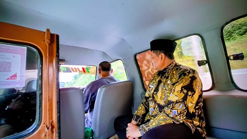 Bupati Sumedang Dony Ahmad Munir menaiki transportasi umum Jum’at (7/11/2025). Bupti melihat para ASN Sumedang masih menggunakan kendaraan dinas dan pribadi pada hari Jumat. (Foto: Humas Pemkab Sumedang)