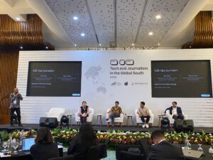 Pada hari kedua konferensi ini, panel diskusi “Preparing the Future: The State of Play in APAC” menghadirkan tiga pembicara, salah satunya Jacque Manabat, jurnalis multimedia asal Filipina yang membagikan pengalamannya dalam kerja jurnalistik. Di era AI, Jacque menggunakan platform media sosial seperti TikTok untuk memproduksi konten berita terkini. Sebagai newsfluencer atau influencer yang menyampaikan berita, Jacque tetap menggunakan metode jurnalistik dalam bekerja; melakukan pengecekan fakta dan disiplin verifikasi, serta mematuhi Kode Etik Jurnalistik.