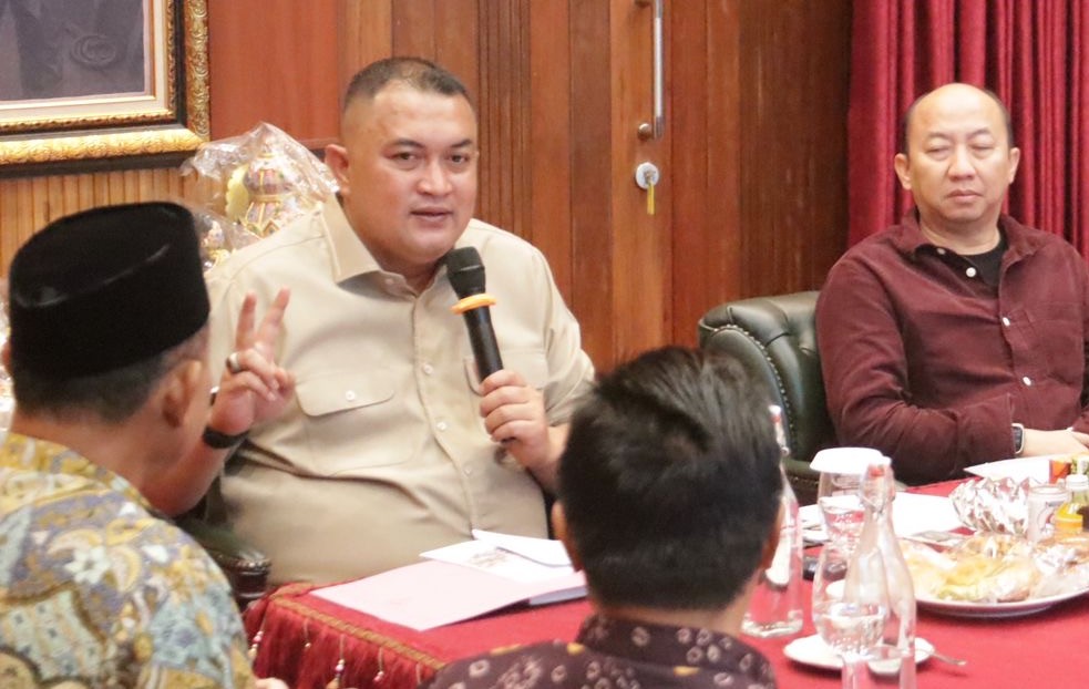 SATUJABAR, CIBINONG – Bupati Bogor, Rudy Susmanto bersama Majelis Ulama Indonesia (MUI) Republik Indonesia dan jajaran pihak terkait melaksanakan audiensi Aksi Bersih sekaligus pengukuhan Fatwa MUI tentang haramnya membuang sampah sembarangan, di sungai, danau, dan laut. Kegiatan tersebut berlangsung di Aula Soekarno Hatta, Pendopo Bupati Bogor, Cibinong, Selasa (10/2).