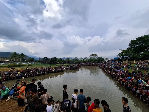 Panitia menebar ikan ke dalam kolam dengan jumlah kurang lebih dua kuintal. Ikan-ikan tersebut langsung menjadi buruan peserta yang berbondong-bondong turun ke kolam dengan penuh semangat. Sorak sorai dan tawa warga menambah kemeriahan acara, menciptakan suasana kebersamaan yang hangat dan penuh kegembiraan.