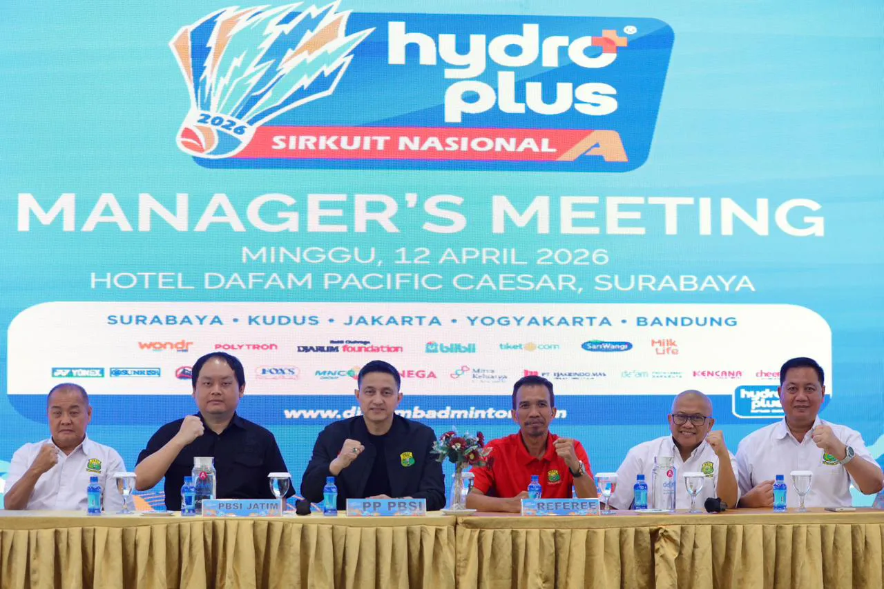 SATUJABAR, SURABAYA – Persatuan Bulutangkis Seluruh Indonesia (PBSI) secara resmi membuka rangkaian Hydroplus Sirkuit Nasional A Jawa Timur 2026 yang akan berlangsung pada 13–18 April 2026. Kejuaraan ini digelar di tiga lokasi, yakni GOR Sudirman sebagai lapangan utama, serta GOR Suryanaga dan GOR MERR sebagai lapangan pendamping.