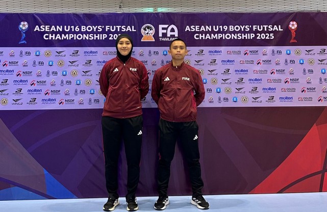 Dua wasit futsal Indonesia, Fitra Fauzi Rahmat dan Tita Rosita, ditunjuk untuk bertugas pada ASEAN U-16 & U-19 Boys’ Futsal Championship 2025 yang tengah berlangsung pada 23-29 Desember 2025 di Nonthaburi, Thailand.(Foto: Dok. PSSI)