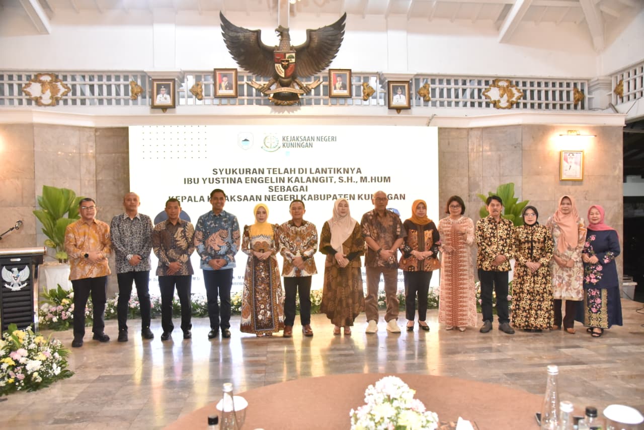 SATUJABAR, KUNINGAN – Pemerintah Kabupaten Kuningan menggelar kegiatan Serah Terima Jabatan (Sertijab) yang dirangkaikan dengan syukuran atas dilantiknya Yustina Angelin Kalangit, S.H., M.Hum. sebagai Kepala Kejaksaan Negeri (Kajari) Kuningan. Kegiatan tersebut berlangsung pada Rabu malam (1/4/2026) di Teras Pendopo Kabupaten Kuningan dalam suasana hangat, penuh kekeluargaan, dan semangat sinergi.