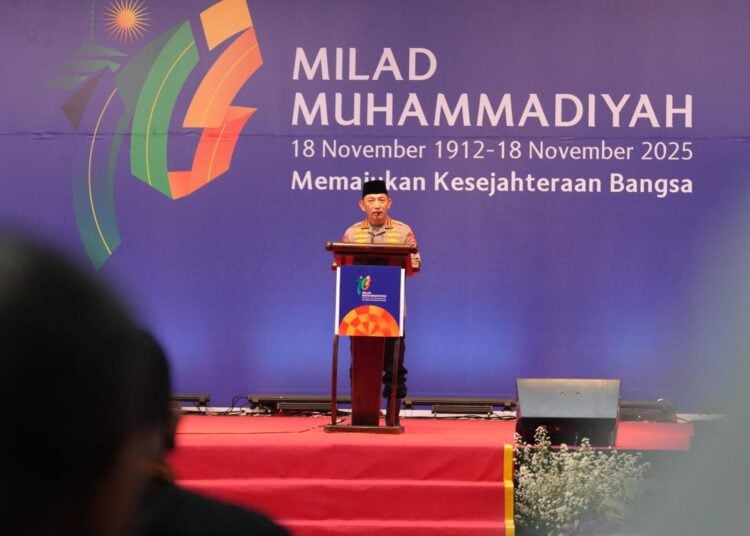 BANDUNG – Kepala Kepolisian Negara Republik Indonesia (Kapolri) Jenderal Polisi Listyo Sigit Prabowo memberikan pidato testimoni dalam acara Milad ke-113 Muhammadiyah yang diselenggarakan di Universitas Muhammadiyah Bandung pada Selasa (18/11).