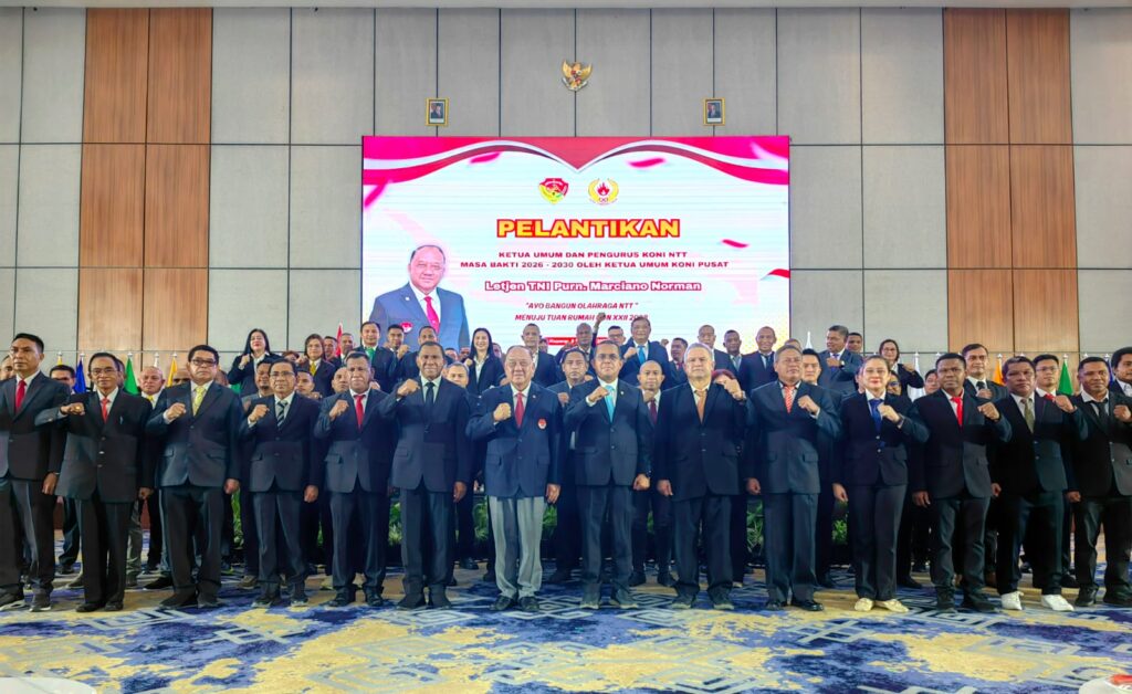 SATUJABAR, KUPANG – Ketua Umum Komite Olahraga Nasional Indonesia (KONI) Pusat Letjen TNI Purn Marciano Norman mengukuhkan dan melantik Ketum KONI NTT 2026-2030 yang juga Gubernur NTT Emanuel Melkiades Laka Lena dan jajarannya di Hotel Harper, Kupang pada Minggu malam tanggal 8 Februari 2026.