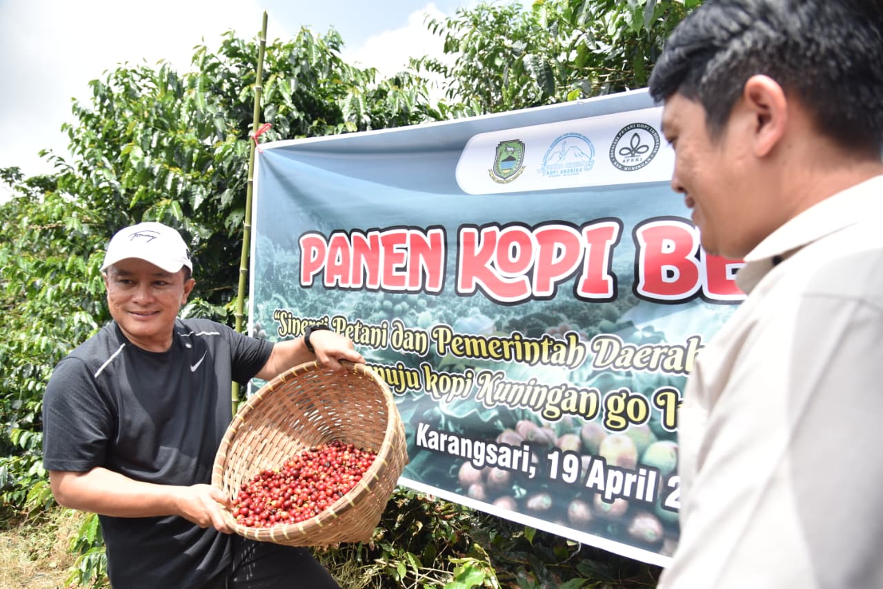 Kepastian tersebut disampaikan Bupati Kuningan, Dian Rachmat Yanuar, saat menghadiri kegiatan Panen Kopi Bersama bertema “Sinergi Petani dan Pemerintah Daerah Menuju Kopi Kuningan Go Internasional” di Kebun Kopi Blok Pasir Batang, Desa Karangsari, Kecamatan Darma, Minggu (19/4/2026).