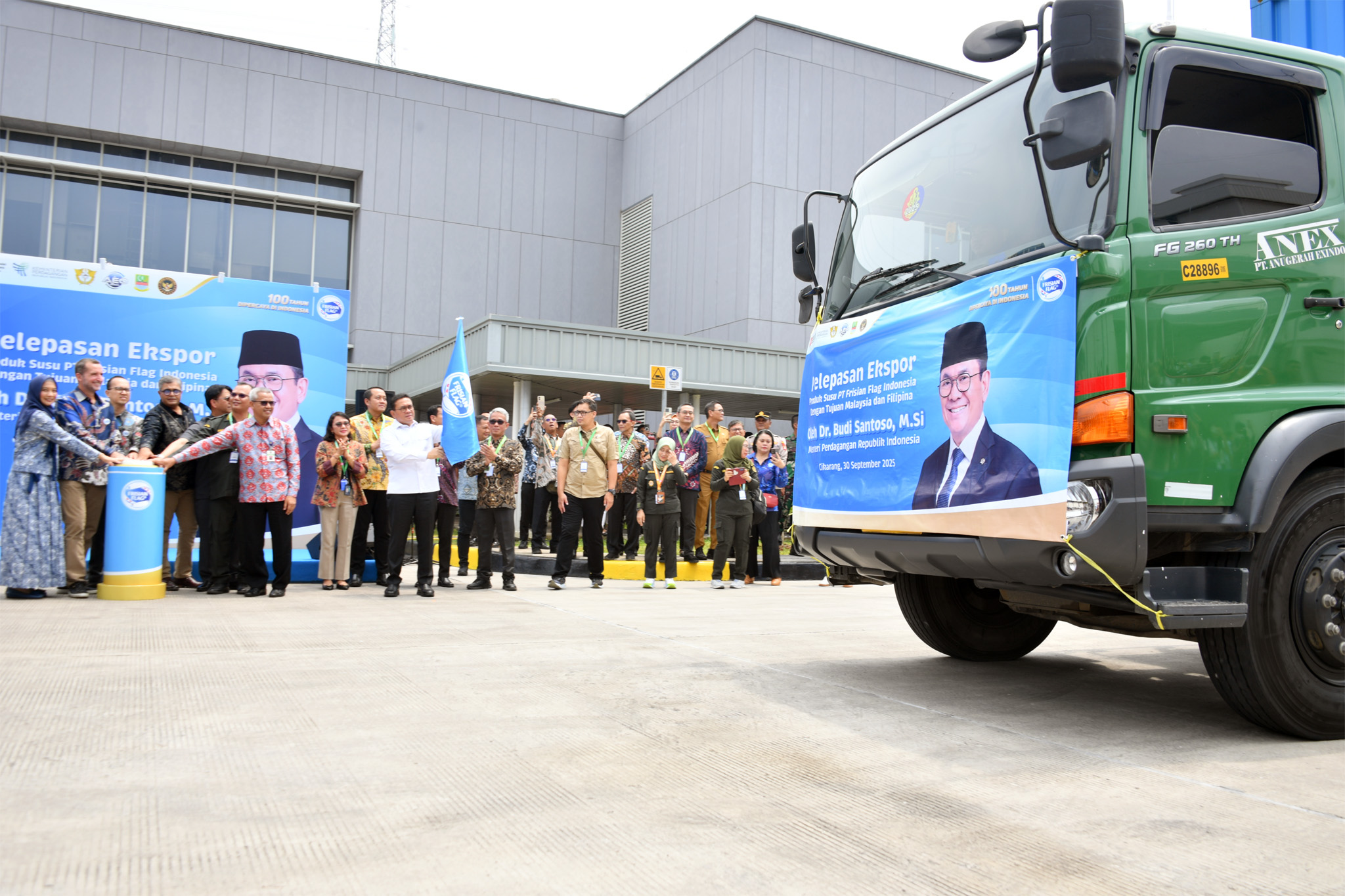 SATUJABAR, CIKARANG — Menteri Perdagangan (Mendag) Budi Santoso secara resmi melepas ekspor produk susu produksi PT Frisian Flag Indonesia (FFI) ke Filipina dan Malaysia. Acara berlangsung di fasilitas FFI di Cikarang, Kabupaten Bekasi, Jawa Barat, Selasa (30/9).