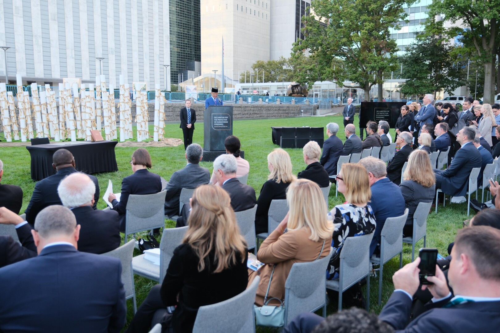 SATUJABAR, NEW YORK, AMERIKA SERIKAT – Menteri Luar Negeri Republik Indonesia, Sugiono, menghadiri acara peluncuran Deklarasi Global Pelindungan Personel Kemanusiaan di Markas Besar Perserikatan Bangsa-Bangsa (PBB), New York, pada Sabtu (21/9). Kegiatan ini menjadi bagian dari rangkaian pembukaan High Level Week Sidang Majelis Umum (SMU) PBB ke-80.