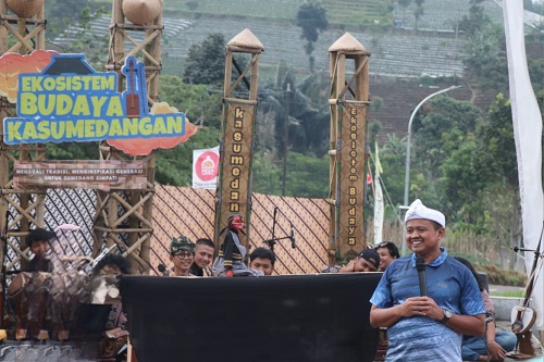 Bupati Sumedang Dony Ahmad Munir di Cepot Ngabuburit Geoteater Rancakalong Sumedang Sabtu (21/2/2026).(Foto: Humas Pemkab Sumedang)