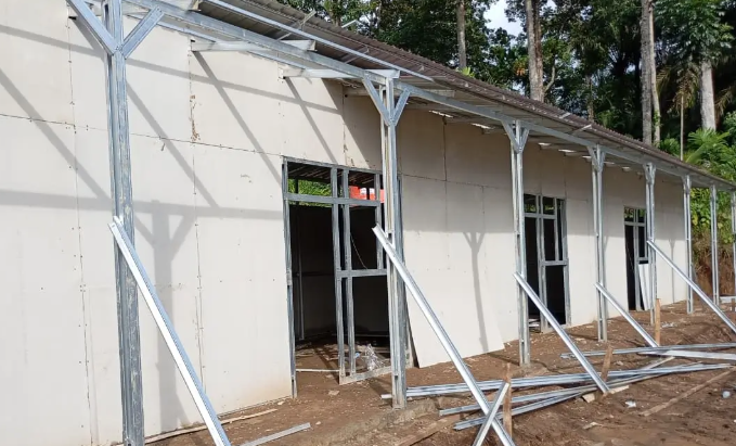 Hingga hari ini, proses pengerjaan huntara di Lapangan SDN 05 Kayu Pasak telah mencapai 50% dari target. Baja-baja ringan sebagai pondasi dan pembatas bangunan telah berdiri tegak. Pemasangan dinding mulai dilakukan bertahap. Empat unit alat berat juga terus bekerja pagi hingga malam.
