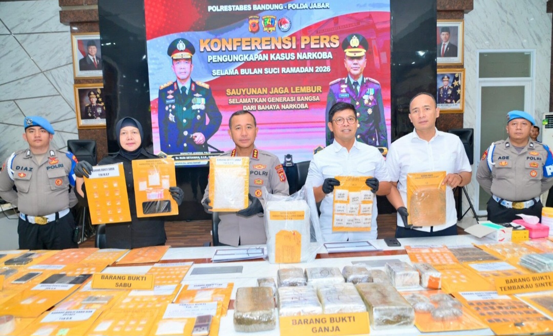 “Peredaran narkotika di wilayah hukum Polrestabes Bandung, dengan barang bukti sembilan kilogram daun ganja, kita ungkap di daerah Bojong Koneng. Daun ganja berasal dari Sumatera yang diselundupkan secara berantai melalui jalur darat,” ujar Agah, dalam keterangan pers di Mapolrestabes Bandung, Rabu (11/03/2026).