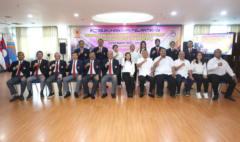 SATUJABAR, JAKARTA – Ketua Umum Komite Olahraga Nasional Indonesia (KONI) Pusat Letjen TNI Purn Marciano Norman mengukuhkan dan melantik Ketum Pengurus Besar Persatuan Angkat Berat Seluruh Indonesia (PB. PABERSI) masa bakti 2024-2028 Anna Maria dan jajarannya pada 27 Februari 2026.