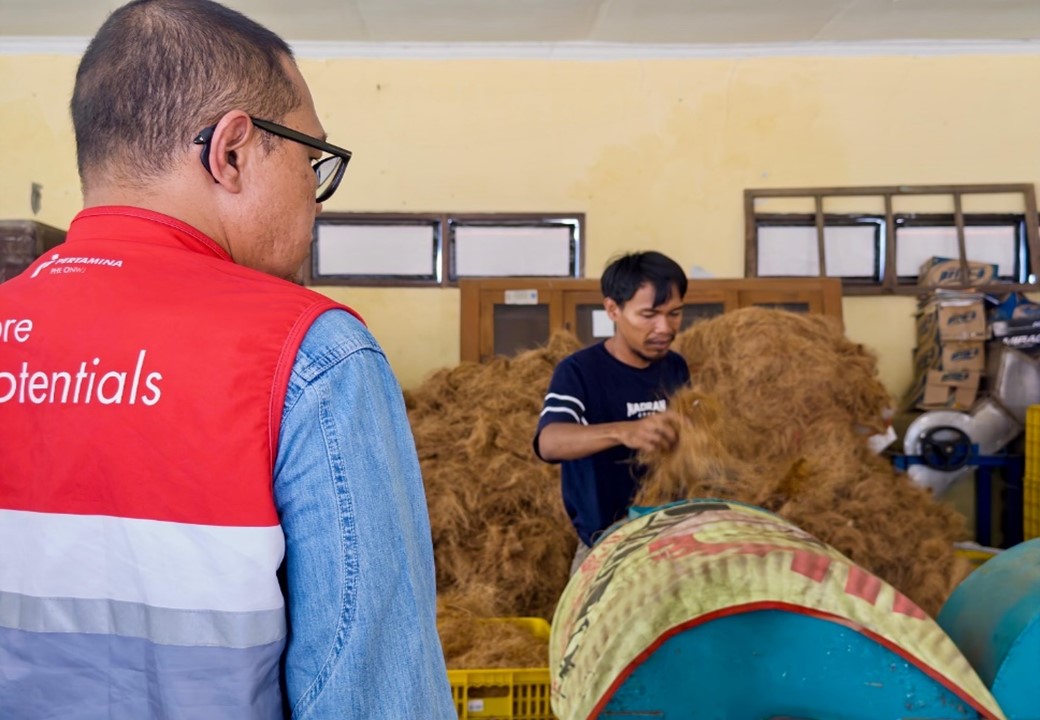 “Tahap pertama, limbah serabut kelapa akan diolah menjadi coco rope. Sesuai kapasitas mesin, kelompok ini mampu memproduksi 60 kilogram per hari, yang jika dikalkulasi dapat memberi pendapatan kotor sekitar Rp360.000 per hari,” jelas Nanang. Pada tahap awal, program ini langsung menyerap lima tenaga kerja dan mampu mengolah 4,5 ton bahan baku per bulan.