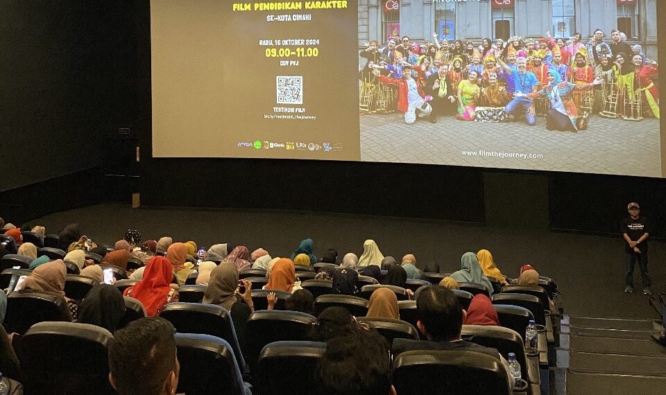BANDUNG – Dalam rangka mendukung penanaman nilai-nilai karakter di bidang pendidikan, Tim Muhibah Angklung, grup seni dan budaya asal Bandung, Jawa Barat, bekerja sama dengan Dinas Pendidikan Kota Cimahi menyelenggarakan kegiatan Nonton Bareng (Nobar) film “The Journey: Angklung Goes to Europe”, Rabu (16/10/2024), di CGV Paris Van Java Mall, Bandung. Pj Wali Kota Cimahi Dicky Saromi yang hadir bersama ratusan Kepala Sekolah, tenaga pendidik, dan komite sekolah se-Cimahi menyerukan sekolah untuk menonton film tersebut sebagai upaya penguatan pendidikan karakter di kalangan pelajar.