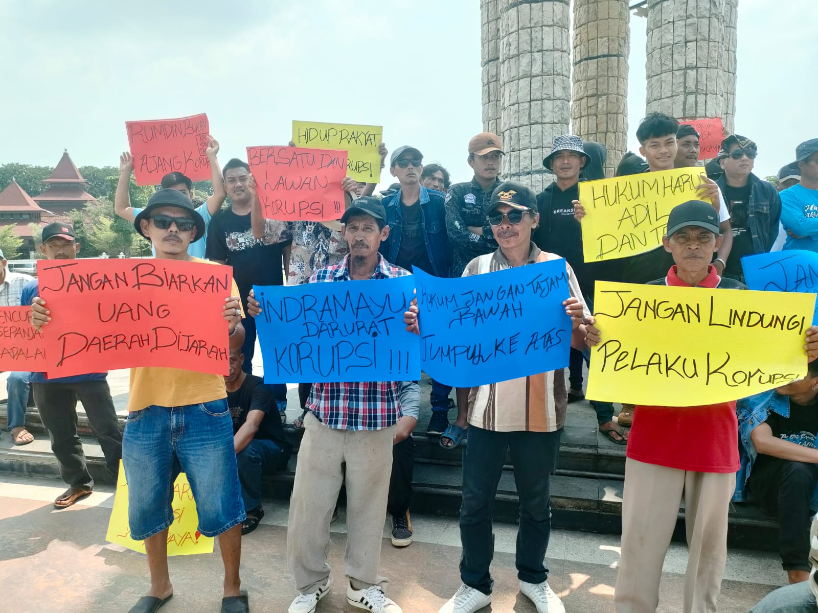 Ratusan massa yang tergabung dalam Gabungan Elemen Masyarakat Indramayu (GEMI) melakukan aksi unjukrasa di Kejaksaan Negeri Indramayu dan Pendopo Kabupaten Indramayu, pada Rabu (15/4/2026).(Foto: Istimewa)
