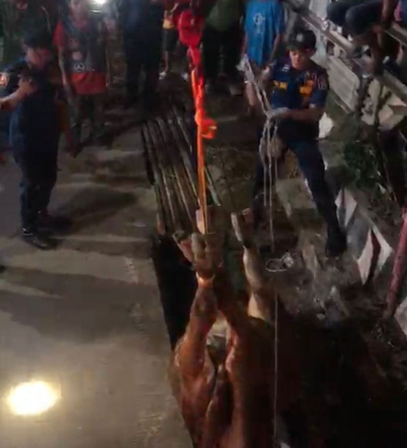 Sapi masuk parit di Maleber Kota Bandung diselamatkan Dinas Kebakaran dan Penanggulangan Bencana (Diskar PB) Kota Bandung.(FOTO: Humas Kota Bandung)