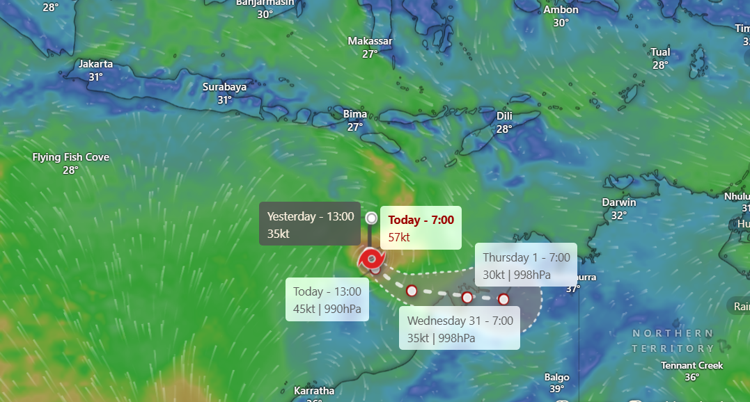 Siklon Tropis Hayley.(Image: windy.com)