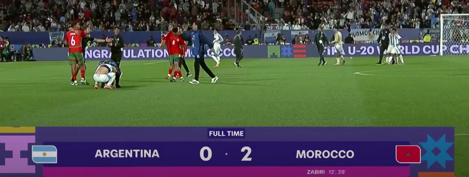 Pada laga itu. Timnas muda Maroko tampil sangat impresif bahkan superior atas Timas muda Argentina dengan unggul 2-0 di babak pertama.