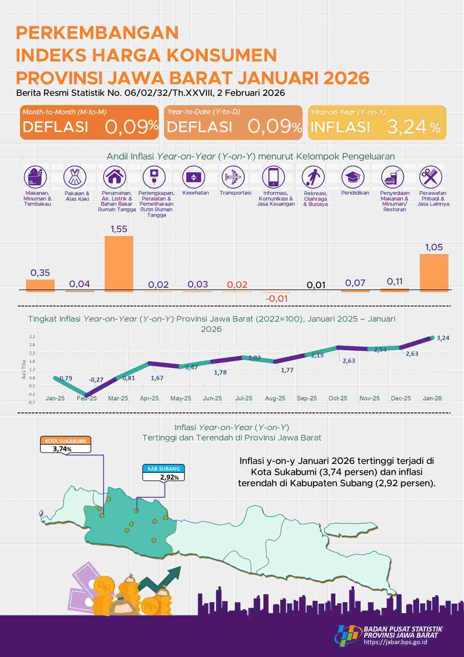 SATUJABAR, BANDUNG – Badan Pusat Statistik (BPS) Jawa Barat menyebutkan pada pada Januari 2026 terjadi inflasi year on year (y-on-y)…