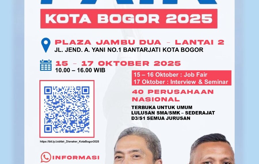 Job fair ini akan dilaksanakan pada 15- 17 Oktober 2025 di Lantai II Plaza Jambu Dua Kota Bogor.