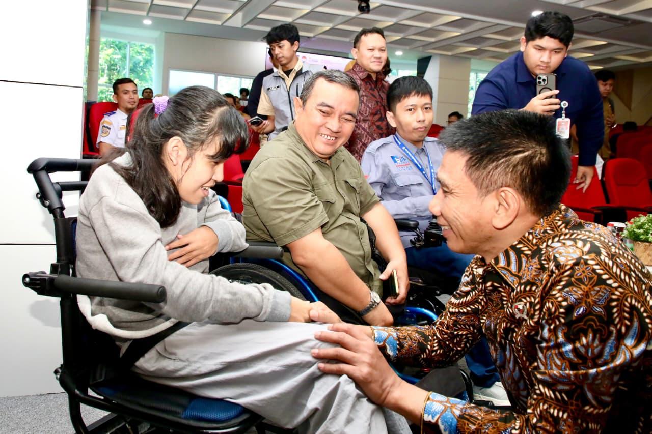 Wakil Menteri Dalam Negeri (Wamendagri), Akhmad Wiyagus, menyapa penyandang disabilitas di sela-sela acara “Advokasi Hak Pendataan Penyandang Disabilitas” di Telkom University, Bandung, Senin (20/4/2026).(Foto: Istimewa)